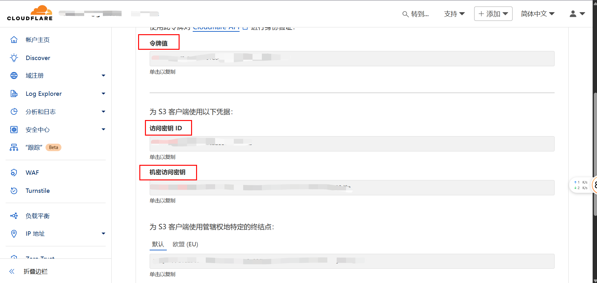 - 获取访问存储桶的## AccessKeyID和## SecretAccessKey(简称:ak和sk)